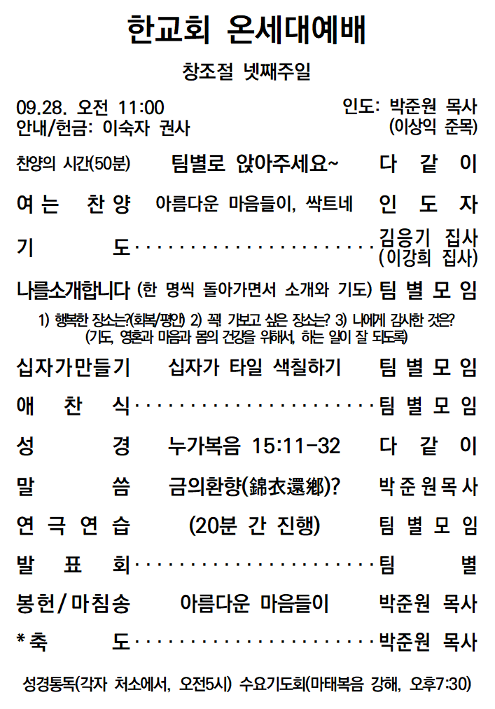 이전글 | 20251005 한교회 주일예배(한가위감사주일) ![]() |