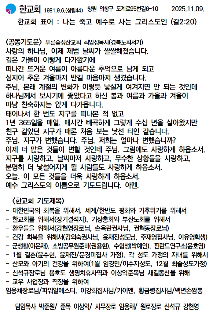 20251109 한교회 주일예배 박준원 2025-11-09 추천 0 댓글 0 조회 52 http://hanchurch.onmam.com/bbs/bbsView/18/6577087 첨부파일 (0) 0