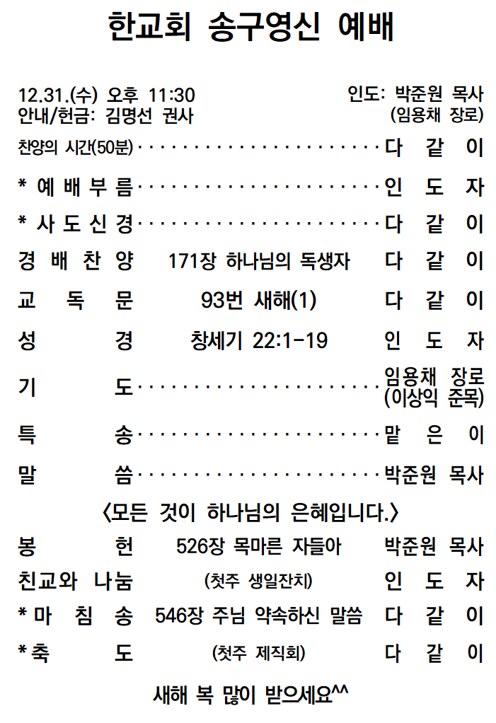 20251231 한교회 송구영신예배