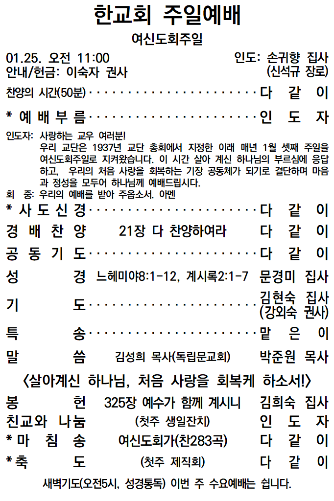 20260125 한교회 주일예배(여신도회주일)