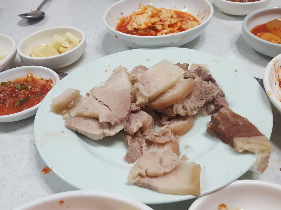 등산 후 함안 에서의 저녁식사 때 먹은 돼지 수육은 그야말로 일품, 모두가 탄성을 자아냈고 오랫동안 가마솥에서 끓여낸 소고기 국밥은 마치 어릴적 마을잔치 때 가마솥을 걸고 끓여내 인정넘친 국밥 처럼 구수하고 맛있었다.