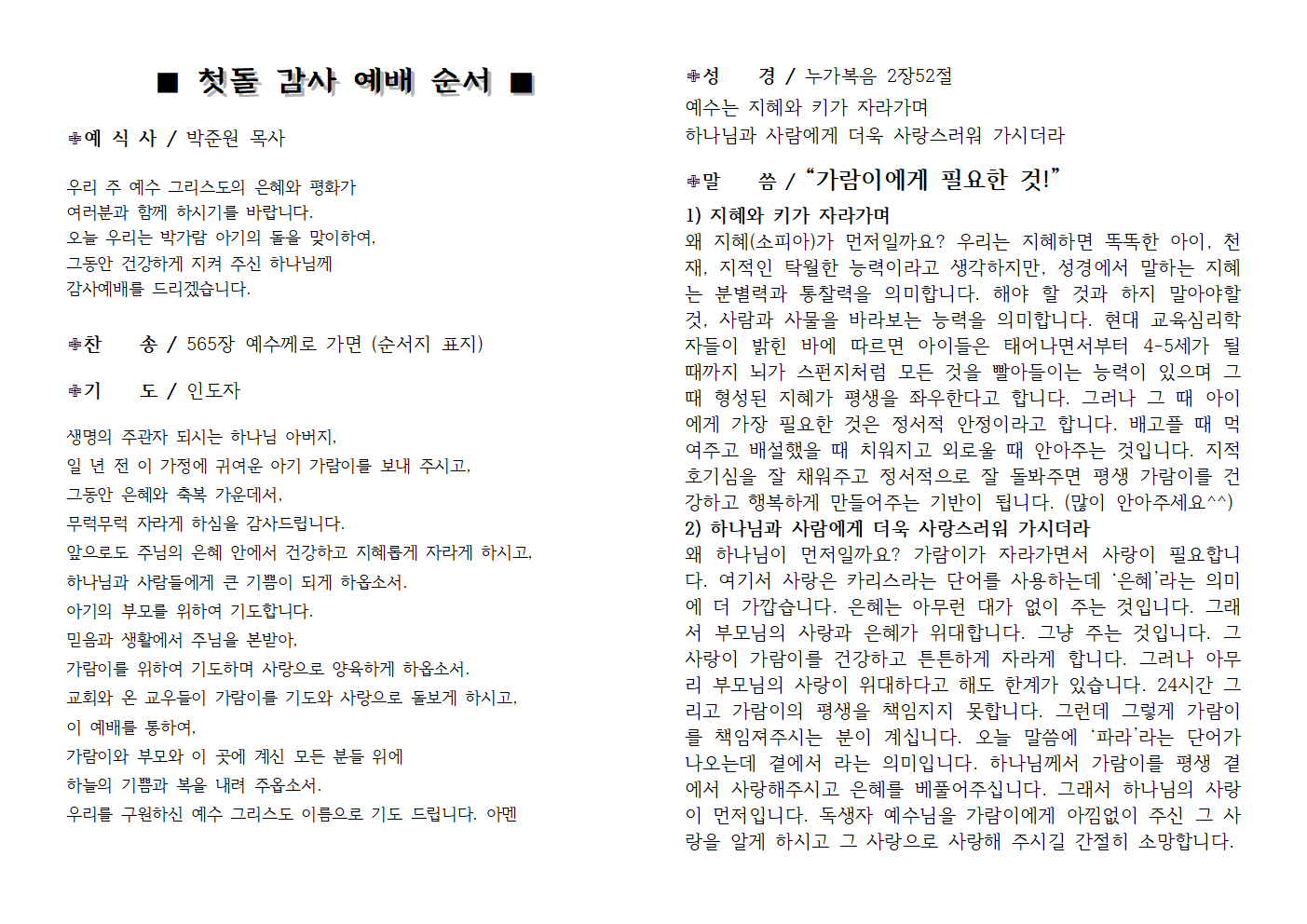 가람이의 첫생일을 축하합니다^^ 사랑하고 축복합니다.