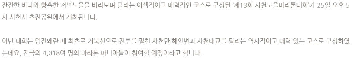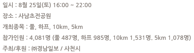 청년회 버킷리스트 일환로 사천노을마라톤대회 5Km에 참여하였습니다.