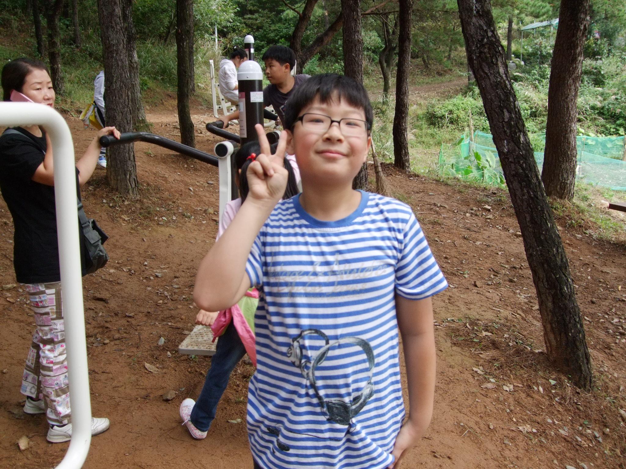 산에 올라와 열심히 운동하는 효영이와 승은이~