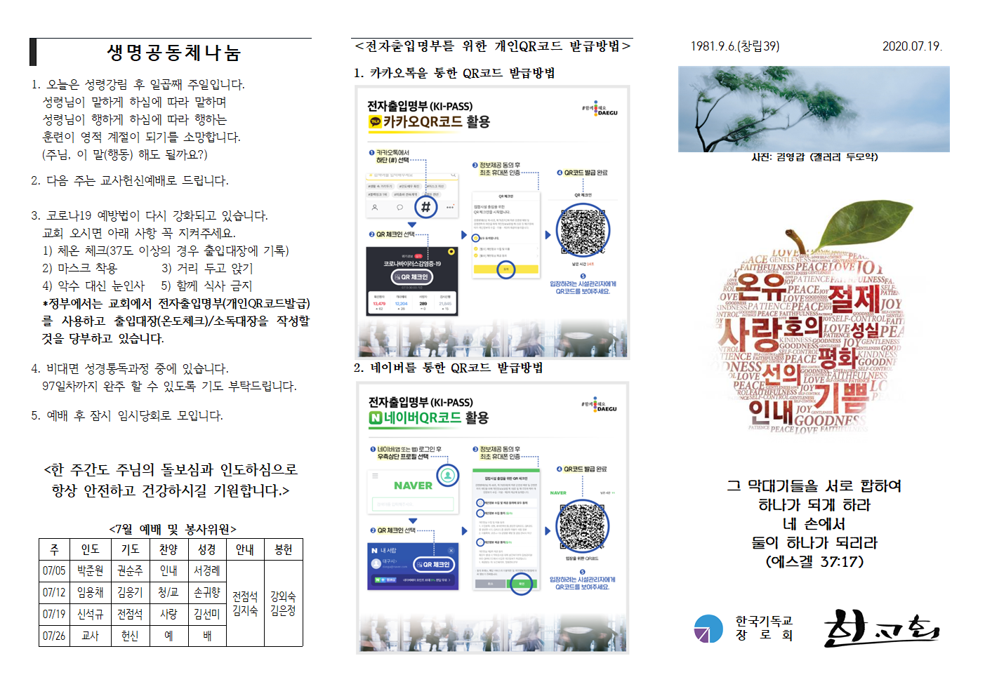다음글 | 2020/07/12/ 맥추감사주일 한교회주보 | 박준원 | 2020.07.23 | 1 | 185 |
