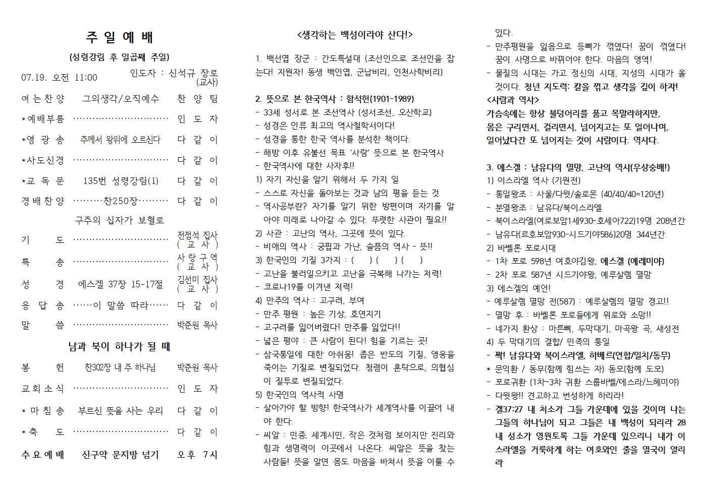 이전글 | 2020/07/26/ 성령강림후8 한교회주보 | 박준원 | 2020.07.27 | 1 | 214 |