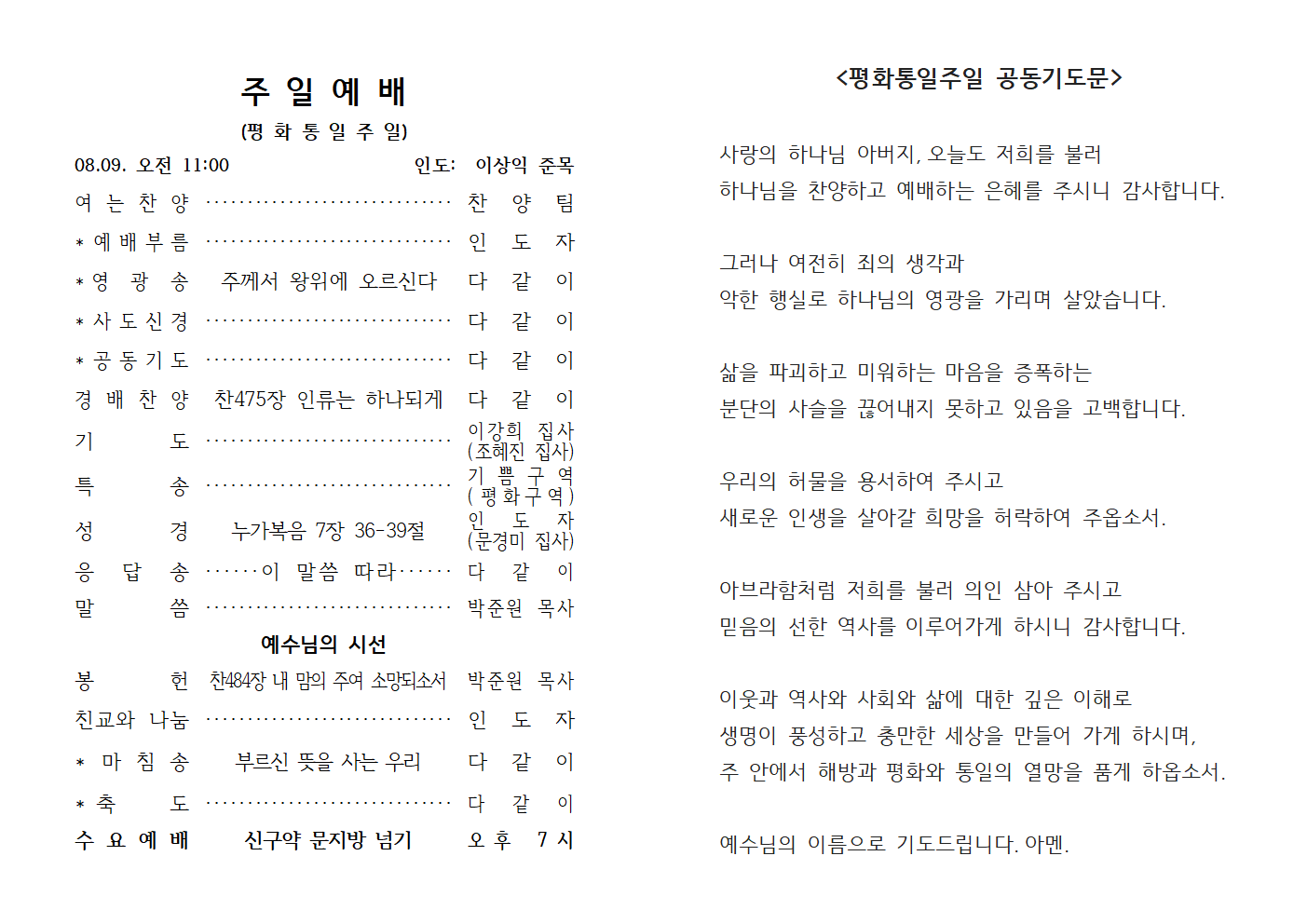 이전글 | 2020/08/23/ 비대면 주일가정예배 | 박준원 | 2020.08.23 | 1 | 239 |