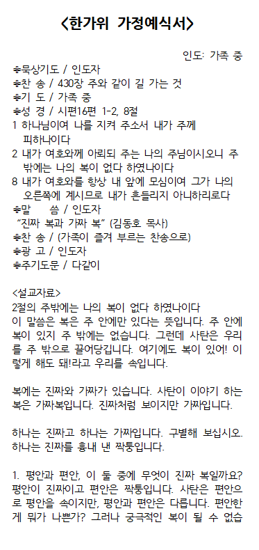 다음글 | 2020/08/30/ 코로나재확산으로 인한 주일가정예배(2-2) | 박준원 | 2020.08.30 | 1 | 285 |