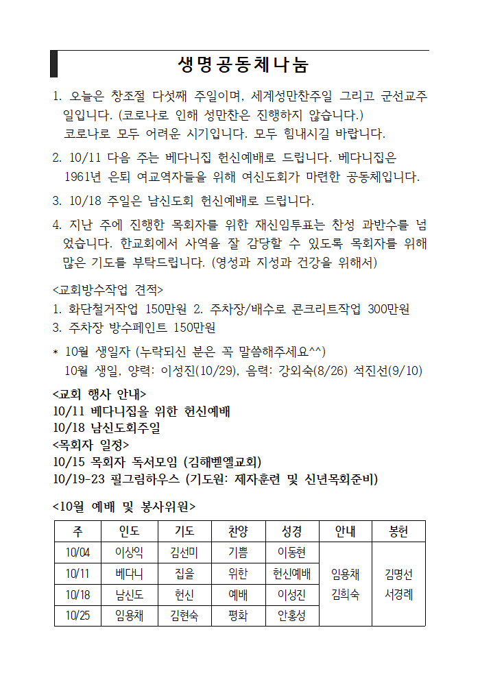 이전글 | 2020/10/11/ 베다니집 헌신예배 | 박준원 | 2020.11.09 | 1 | 205 |
