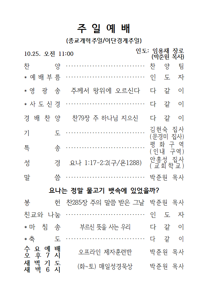 이전글 | 2020/11/01/ 창조절9 | 박준원 | 2020.11.09 | 1 | 206 |
