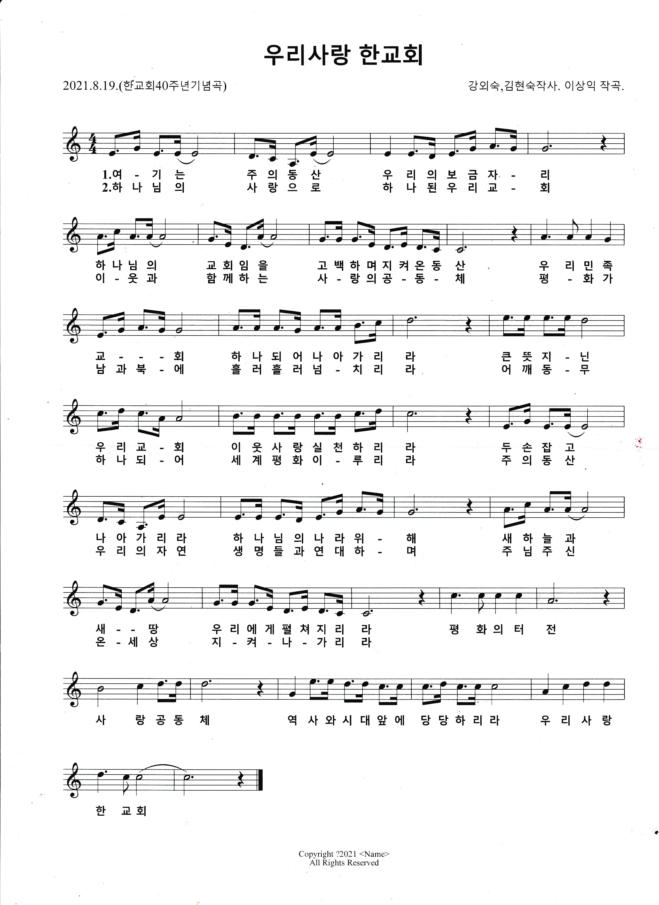 한교회 창립40주년 한교회가: 우리사랑 한교회
